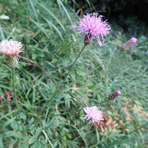 市内の田園風景の中、土手にタムラソウが見頃でした。真ん中が普通の花色、アザミと同じ色、右左に少し白い花をつけたもの。この色のものは珍しい。✌️🐶