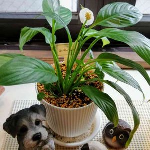 今日のお花 スパティフィラム ポットで増殖中 増えるといいなぁ😅