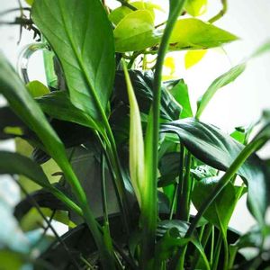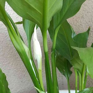 スパティフィラム 衝動買いしましたが…大きな鉢に植え替えてあげた方がいいのでしょうか? 花がグリーンなので花終わりになったらどう変化するのかがわかりません😢