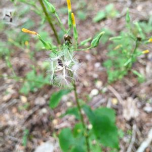 ヤマニガナ 🌱キク科 アキノノゲシ属 ✽高さ60cm〜2mの一〜越年草 ✽葉の変異ほ大きいが、おおむね矢じり形で基部は広い翼のある柄状で茎を抱かない ✽下部の葉は羽状に切れ込むことが多い ✽頭花は径約1cm 背丈の割には小さな花です💛 ③⬇️冠毛も見られました!