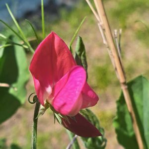 赤いスイートピー 昨秋に花友さんが、種から育てた苗を くださいました 暖かくなってきて、どんどん大きくなってきて、今朝、とってもきれいな赤いスイートピーが咲きました💕 🎵春色の汽車に乗っ~て