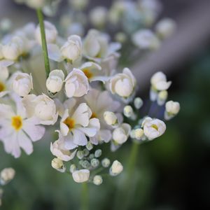サクラソウ科 サクラソウ属 欧州からアジア 原産 多年生植物 北半球を中心に約500種が 自生 分布する 日本ではクリンソウをはじめ 約20種ほど確認 プリムラ マラコイデス 中国雲南省 原産 全体に粉を纏うことから 別称 ケショウザクラ 暑さに弱いプリムラの中でも 特に弱く 一年草扱い 輪状に花をつけ 段上に次々と花を咲かす 細い茎に5枚の花びら 上に上に段々にお花を つけます。 プリムラ マラコイデス ウィンティーライムグリーン そよ風にすら ゆらゆらと 揺らぎ やさしげな姿 今はピーチを初め いろんな色が揃いますね。 十数年のロングヒットなお花 好きで毎年 植えていました。 他のマラコイデス系の品種は 暖地といわれるこちらでも 本格的な厳寒時は傷み 花がお休みしますが この系統は休まずに 寒さもなんのそのと 咲きつづけます。 プリムラはポリアンサ ジュリアン オブコニカ シネンシスなど園芸品種も たくさんありますが 原種もたくさんあります。 黄色い プリムローズなどが よく知られていますね。 寒さに強いぶん暑さには 弱く 夏越しは難しい また雨にもいたみやすいので 鉢花として楽しむのが ベストでしょうか。 早ければ11月の後半 ジュリアンが出揃うころに 登場し 冬の間に ゆっくりと成長 そして 春を待ちます。 フワフワとした可憐さ どんな花ともマッチして 邪魔になりません。 このところは三寒四温を 彷彿させるほど 暖かい日が続きます。 花影に春がみえるような みえないような… 今日1日 お疲れ様でした。