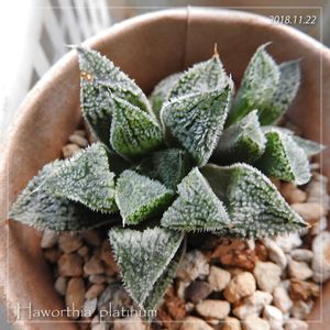 ハオルチア、プラチナ。ラヴィアンローズの白バージョンみたいなの。春先はちょっと茶色くなるけど、ラヴィアンローズほどではない感じ。実は違いがよくわからない。もっと大きくして白さを楽しみたいなー。