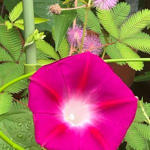 5つ目の『命の朝顔』が咲きました💕 種を5コもらって植えたけど、2つしか芽が出ませんでした😳 1つは淡い紫、こちらは濃いピンクです😊