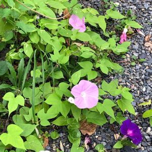 昨年のこぼれ種の朝顔😅 あちこちで咲いています💜