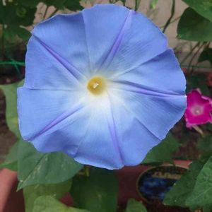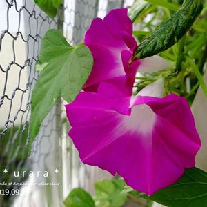 小学1年生の孫が育ててる朝顔が咲き始めました🎵 孫も朝顔も、空を見上げながら、大きく育てーーー\(^o^)/∠※。.:*:・'°☆