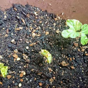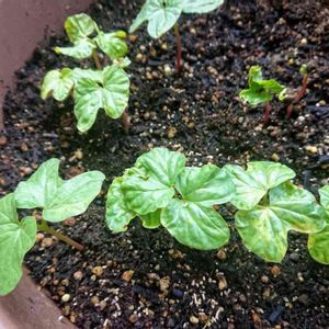 朝顔の種を1週間前に撒いて、二葉🌱になりました(´˘` )♪