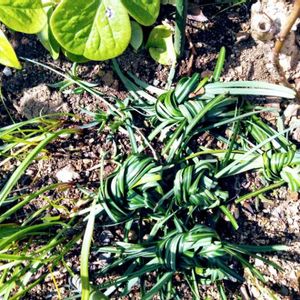 散策の通り道のお宅の、花壇にリュウノヒゲのような、植物が何故かみんな、結んで有ります。 何故か、分かりません。 不思議です。何故⁉️