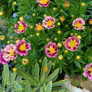 おはようございます✨ 三年目のコレオプシスソランナ・サンセットバースト 夕焼けのような花色のイメージからの名前🌄 ユーフォルビア・ゴールデンレインボーと一緒に✨ 今日から7月ですね🌺 各地で猛暑日の予報… お気をつけてお過ごしくださいね〜🤗🥤🍦🍧 最低気温22℃ 最高気温30℃ くもり