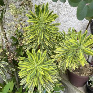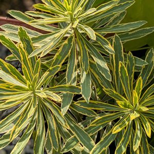 枝数増やそうと強剪定して以来、あまり調子が芳しくなかったE.カラキアス‘シルバースワン’ 動きが悪かった成長点にこのところ生命力が感じられるように✨ そんな折に葉友さんの立派な‘ブラックバード’を見て( >_[・]) ロックオン 前から欲しかったので迷わずお迎え。 ついでに‘ゴールデンレインボー’も。 この3種、草姿がそっくりで花の咲き方も同じなのに学名が違う。 全部E.カラキアスだと思っていたら、新入り2種はE.マルティニーだという。 調べたら、カラキアスは原種で、‘シルバースワン’はそこからの斑入り園芸品種。 マルティニーはアミグダロイデスとカラキアスの原種同士の自然交配種で、‘ブラックバード’と‘ゴールデンレインボー’はマルティニーから生まれた園芸品種。 同じルーツを持ちながら、このバリエーション✨ 並べると楽しいね😆 大きくなるのが今から楽しみ🎶