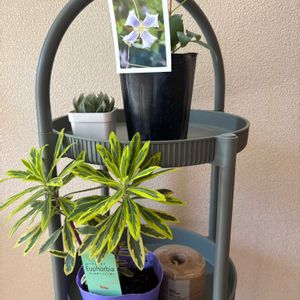 購入記録🌻🐸🌵 🟢トヨタガーデン🟢 🌱クレマチス チャッツワース ビチセラ系 及川フラグリーンの苗 白い「庭のよろこび」、 「プロスペリティ」を手に取って。 新枝咲きの苗を探して。 🌱ハオルチア 🌱ユーフォルビア ゴールデンレインボー ブラックバードも良さそう。 花苗二つは、 4号スリット鉢に仮植え。 🟢IKEA🟢 丸型3段ワゴン ユッテルスボー 底面に穴があるのが👍 🟢無印良品🟢 麻紐 支柱に結んだり、バラの誘引などに。 地元のメグリア本店に 2026.3.オープン予定。 MUJI GOOD PROGRAM 100円につき1ポイント 1ポイント🟰1円で買物🆗 10/19 システム障害で、 ネットショップは休止中。