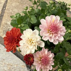 ガーデンマム ジジの挿し木っ子 本来は黄色オレンジ色系のお花が咲くのですが うすピンクが咲いてきました 退色して白になったものもあって 色んな色が楽しめてラッキーです🤭💕 先日のおおつ花フェスタで購入した ユーフォルビア ゴールデンレインボー 暑さ寒さには強いとのことなので 焦げ気味のフロックス エリザベスを移植して その場所に植えました 大株になって欲しいです😆