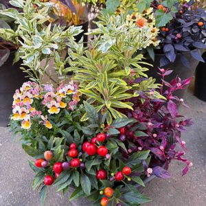 夏を越してくれた斑入りソラナムの 鉢に新しい寄せ植え 🌶もまだまだ頑張ってる💪