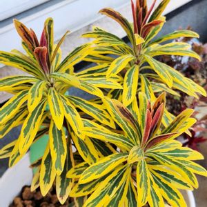 おはようございます✨ 我が家のユーフォルビアたち🌿 伸びすぎたので春に強剪定したら…その後、成長が緩やかになりました🤔 ①ゴールデンレインボー ②右・ブラックバード 左・ブラックスワン 手前はダイヤモンドフロスト 🏷️8日は葉っぱの発表会に参加します♪ 今週もお元気でお過ごしを😉 最低気温22℃ 最高気温32℃ 曇り後晴れ