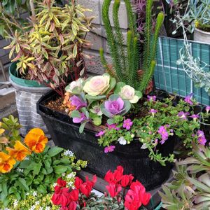 ・ユーフォルビア 今は無きお花屋さんで大きいのを300円でゲットしました!「バムとケロのそらのたび」のウミヘビがこんな感じの色合いだったな〜 ・アリッサム(サミット) 先日、うちのヘルマンリクガメが散歩中に食べておりました…😅ってことでクスダマツメクサを買ったのですが、食べてくれません…😅 ・クレマチスペトリエイ ちょっとお高めの苗をゲット!カートマニージョーもありますが、ただいまリハビリ中です。 ・ベロニカオックスフォード 色合いと花の大きさが可愛くて、買いました! ・ポピー(ブラックマジック) 先日、おしべ?(小さいのが何本かあるやつ)の先が水色もあるし、黄緑もあることに気づきました!ただでさえ、黄色じゃない時点で不思議なのに同じ花で同じ株でもまた違うんだ〜と面白かったです☺️
