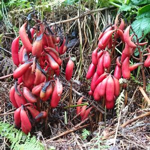 ツチアケビ 土通草 別名: ヤマシャクジョウ(山錫杖) ヤマトウガラシ(山唐辛子) ヤマサンゴ(山珊瑚)