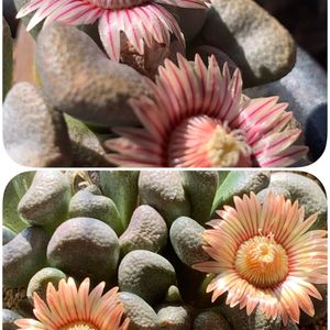 メセン2種。 右は9日に鶴仙園からお迎えしたルスキア美鈴。光にかざすと水玉模様の窓が可愛い😆 左は昨日オザキフラワーパークからお迎えしたアロイノプシス。これは唐扇ことスクーネーシーで良いのかな? ゴツい草体から出た可憐な花に一目惚れ💕調べたらどうやら塊根性らしので、のぞいてみたらしっかり芋ができてた😍