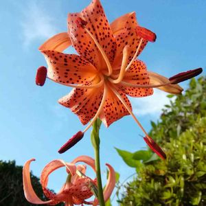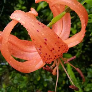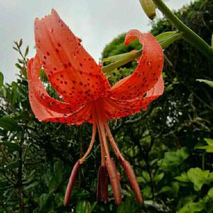 熱帯低気圧の近づく中 コオニユリが咲きました😕 和名─鬼百合 別名─テンガイユリ(天蓋百合) 花言葉…華麗 愉快 2017.7.8 18.6.25 19.6.27─開花