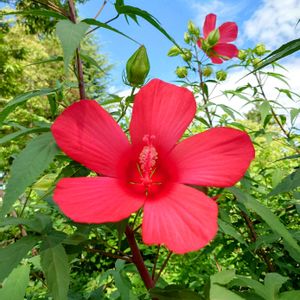 こんにちは♪ 昨夜は涼しくていよいよ秋到来❣️ って\(^o^)/でしたが 昼間は、やはり晩夏って感じがします 明日から10月なんですけどね💦 ①お出かけ先 素敵な庭がある病院 ほんとに‼️大きな花❣️ ②③④⑤今朝の庭 ②今日のお花 フジバカマ まだまだ蕾 ③真っ赤な火曜日 ルコウソウ、ゼプティ、驚きの サンクエール😳 ④で詳しく ④驚きのサンクエール ダラダラでしょ?ダラダラです 昨日お迎えしたんですが… 店員さんに 「これでいいんで すか?ゼロが一つ抜けてない?」 店員さん「枯れてるところもあ るし… 100円です」 もちろん即買いです❣️ 今から剪定して冬越し頑張る😊 ⑤益々深い紫にコムラサキ ピンク🩷のガウラ 🏷️真っ赤な火曜日 🏷️つぶつぶの日 🏷️大好き見切り品 参加します