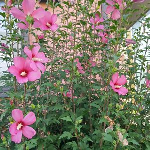 ( *ˊᗜˋ)ノこんにちゎ〜ꕤ 🌸 タイタンピカス 🌸 ꕤ︎︎ ピーチホワイト🌺 ꕤ︎︎ꕤ︎︎ 今年は 見上げる高さに 伸びてしまいました 😅 ꕤ︎︎ꕤ︎︎ꕤ︎︎ アルテミス🌺 こちらは 今年もコンパクトの丈で 横には 広がってますが 🤭 午後も ガンバです♡o(´∀`o*)