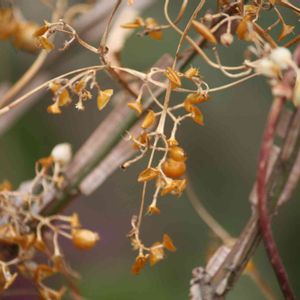 割れずに枯れた、ヘクソカズラの実。 表面がざらざらして見えます。