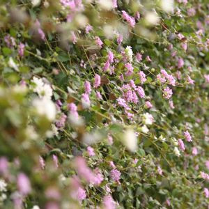 ショッピングセンターの壁を、滝のように覆って咲いているコバノランタナ🌸 遠景で撮ろうとすると、何が咲いているか分からず… 近撮すると、この見事さが表現出来ず…😓 その中間でなんとか妥協☺️