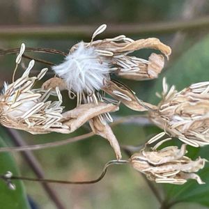 同じくセンニンソウの花後。 ひとつ前のと全然姿が違います。 何か別の蔓が巻き付いているのか、確かめなくちゃ…🤨
