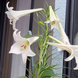 ◆新テッポウユリ もう何年も前に 種から育てた新テッポウユリ... 今年も背高ノッポの 高~い場所で咲いてくれました!!