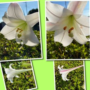 こんにちは😊 ← ↗⭐新テッポウユリ⭐ ↘⭐姥百合(うばゆり)⭐ 新テッポウユリ 蝋梅の側でひっそり咲いてるのを👀つけました✌ 姥百合 名前が気に入りませんが・・・😂 友人から変わった百合を見つけたと📩📷 タカサゴユリではなく新テッポウユリとG.sのボギーさんから教えて頂きました✨✌