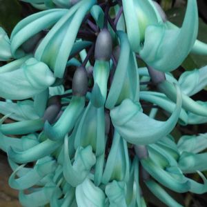 宝石の翡翠のような ヒスイカズラ✨✨ 鳥のクチバシのような花の形 鮮やかな青緑色が とても神秘的でした 牧野植物園 温室🍀 *マメ科 *ヒスイカズラ属