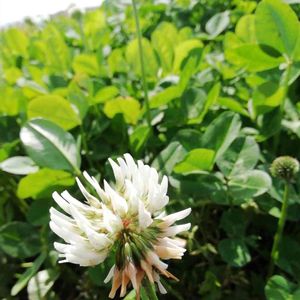 午前中─ 外畑に、 ジャガイモの様子を見に行ったら シロツメクサ(白詰草)が咲いていました🤗 別名─クローバー 花言葉…私を思って