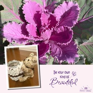 葉牡丹 何年物だろうか…🤔💭 色付きました。 ハンドメイドฅʕ •ﻌ• ʔฅクマたん ペン立てでも、花瓶としてでも…🧸