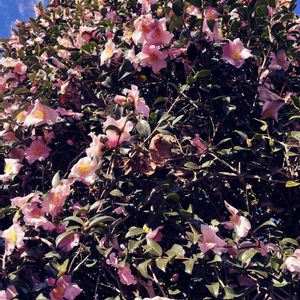 近所の山茶花 ピンク可愛い💓💓 4枚目のpicお気に入りです。 横顔美人さんなのでꉂ🤭