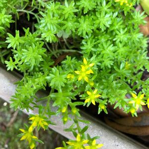 雨があがりました まだ少し肌寒い 庭をパトロール セダムに黄色の可愛いお花が咲きました♪