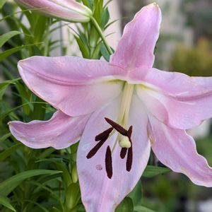 初めて植えてみました。 ほんのりピンク色で綺麗な八重咲オリエンタルユリ じっと見ていると華やかな百合ですが、控えめに慎ましく咲いているように感じました。