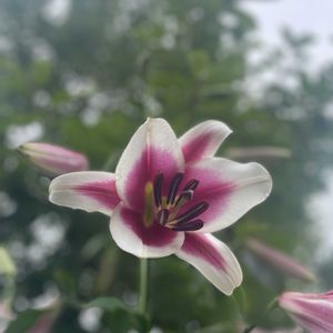 2025.07.18 Oriental Rose Lily Aisha. オリエルタル系LRアイシャが見事な大輪を輝かせてます🌟 素晴らしいの一言ですね。 お世話になっているお花屋さんで一目惚れして育て始めました。 昨年は豊作で沢山文球出来て今年は15球も花が咲きました。 アルバカラーが主張し過ぎない清楚さを表現している感じで、それでいてこの大きさでしっかり見応えのある、矛盾しているようで矛盾していない、表現は難しいですがとにかく良いということが伝われば良いです。 花粉がほぼ無く色が付く、下に落ちる等の心配がなく室内で生けるこの時期の花としては重宝しています。 今年は初の6輪咲きが観られて感激です。 一輪挿しですがボリュームがあり過ぎて一輪挿しとは思えないです。 花が終わるとしっかり球根を太らせて来年に備えたいですね。 ところで、そろそろ睡蓮の季節ですね。 今年は序盤から気温が高く、大規模な高温障害による休眠に入ってしまった株が多くてまだ全体の1割ほどしか咲いてません。 対応を急いでますが今シーズン間に合うかわからないです。 昨年から大幅に数を減らした上でのこの休眠なのでとても寂しい状態です。 しっかり咲き始めたらまた載せると思いますので宜しくお願いします。