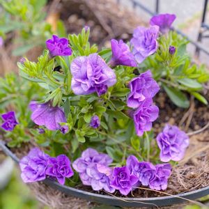 こんにちは*ˊᵕˋ* 今日は、1日中、晴れ☀️の天気でした😊 関東でも風が強く吹くと言う事でしたが、春一番程度の風が時折吹くくらいで、それほど強く無かったので、ホッとしましたε-(´∀`;)ホッ これから温帯低気圧となって進む地域の方も充分気を付けてお過ごし下さい… 今日のpicは、カリブラコア ‘スーパーベル ダブルブルー’です。 八重咲きの爽やかな色が本当に綺麗です💕