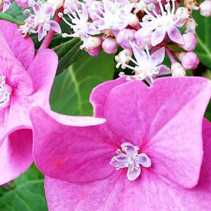 八重咲きのガクアジサイ💖 白い縁取りが可愛い~🎵 華やかにピンクやレッドのドレスで踊ります💃 私は うまく踊れませんけどね➰😆ドタドタ