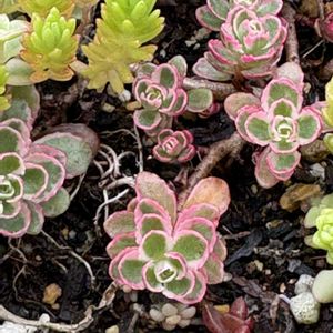 コンバンミ〜🙏🥰😍🤩😉 夜分に失礼致しマス~🙏🙏 水無月(24日)火曜日(☁☂️) 今日は我が家の多肉ちゃんの斑入りを〜📮致しマス~ お高い皆様の様なステキな多肉はございませんが… 私は一般庶民なので~細々と〜多肉を愛して病みませんが〜懐具合と相談して~なるべく〜高額には成らない様には気を付けてマス~(笑)(笑)~ ①…📮する多肉植物だよ〜 全員集合〜 ②…多肉の斑入り寄せ植え ❀雅楽の舞 スベリヒユ科 ポ〜チュラカリア属 流通名 「雅楽の舞」 原産地 アフリカ 別名 「雅楽の舞錦」 「エレファントブッシュ」 原種は「銀杏木」と呼ばれる (ギンナンボク) ❀覆輪万年草 (姫笹) ベンケイソウ科 セダム属 原産地 不明 冬に休眠する 別名 「セダム姫笹」 「リネアレバリエガ〜タ」 「リネアバリエガ〜タ」 オノマンネングサの斑入り種 ❀南十字星 ベンケイソウ科 クラッスラ属 別名「パ〜フォレ〜タバリ エガタ」 星の王子の斑入りタイプ 原産地 アフリカ 花期 春 成長点から伸びて花が咲く ❀サルメント〜サ ベンケイソウ科 クラッスラ属 流通名「サルメント〜サ」 原産地 アフリカ 花期 春 (成長点から伸び花が咲く) ちっちゃいけど〜わかりませんかネ~何故だか~大きく成りましぇ~ん'😫😵😰 ③…セダム (コ〜カサス キリンソウトリカラ〜) ベンケイソウ科 セダム属 原産地 コ~カサス地方 耐寒性多年草 多肉植物 トリカラ〜 やや立性タイプのセダム 斑入りの葉色は寒さに当たると美しく赤みが増していく 暑さ寒さに強く横に広がる ④…覆輪万年草 ベンケイソウ科 セダム属 ❀覆輪万年草 (フクリンマンネングサ) (フクリンマンネンソウ) ➕️ ❀丸葉覆輪万年草 (マルバフクリンマンネング サ) (マルバフクリンマンネンソ ウ) ➕️ ❀南十字星 (星の王子の斑 入り) ⑤〜桜吹雪(サクラフブキ) スベリヒユ科 アナカンプセロス属 耐寒性多年草 園芸品種 花期 5〜7月 桜吹雪は吹雪の松の斑入り品種で斑の入りがピンク色に染まることから桜吹雪の園芸名がついたといわれている 冬 休眠期 桜吹雪のお花💐が咲いてしまった〜アチャ〜花柄らしき残骸が〜垂れ下がってた〜まだ蕾有るけど~⁇⁇ 昨年は咲いてたけど~さほど〜咲いた〜って言う様なお花💐で無かったから〜💐📱パシャリしなかったけど~⁇⁇ お花💐中々見れ無いって言うのはこう言う事かな~⁇⁇ 月下美人の様に夜に咲くって事無いデスよネ~⁇⁇ 蕾が長いまま〜枯れる事も有る🦆デスよネ~⁇⁇ 今日も〜宜しゅうに〜🙏 オヤスミ💤💤💤なさいネ~👍✌️👌👋👋👋