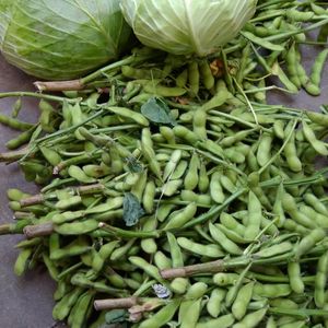 枝豆&キャベツ (湯上がり娘) 収穫に行って来ました〜 参加者で分け合います。 今日は、55人 番号札を引いてその番号の収穫物を持ち帰ります。 今日は、1番GET✨ 何かいい事ありそう🎵 来週は、ゆかた娘を収穫
