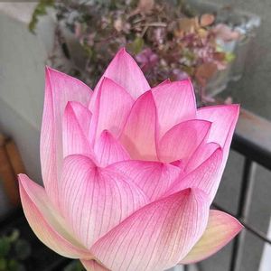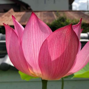 最初に花芽を確認してから18日目にして、やっと開花‼️ 蓮の花のこの色は何とも言えない美しさがあります。