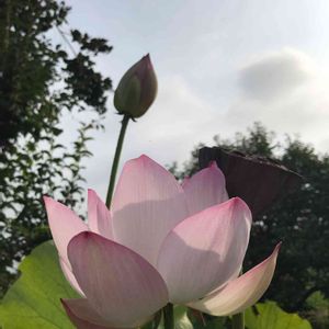 ハスの花🤍 白い蕾と葉の緑🌿が光に当たり キレイでした✨ 🌿豊田市寺部町 随応院🌿