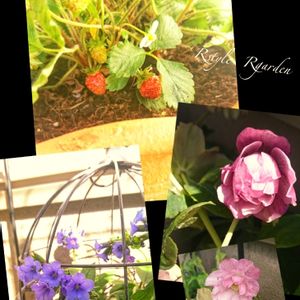 ワイルドストロベリーの葉をかき分けてみたら実がが赤くなってました🍓1つ食べてみたらそこそこのお味(*´艸`*) クリスマスローズは最後の蕾が開きました✨✨ 左下は地植え待機のプリモナリア✨✨紫一色になっちゃったけど咲き始めの頃はピンクだからまざり合った時が好き♥️
