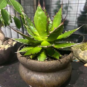 🏷8月は鉢月🪴 アロエ・ハイブリッド Aloe hybrid 厳ついハイブリッドのアロエ(サロエ)と ぼくモル鉢 BYを合わせました🪵⛰ 古木の幹肌やモニュメントバレーのような岩壁をイメージした鉢の表情が 荒々しい棘をもつアロエのたくましさを際立ててくれたはず💪🏻( ¨̮ 💪🏻)🔥 🏷ぼくモルポタリー🐹🤲 🏷ぼくモル鉢🪴🐹