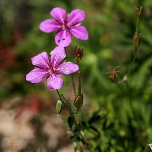 六甲山高山植物園でで会った花達 ①アサマフウロ別名ホソバアサマフウロ フウロソウ科 フウロソウ属 丈は50〜90センチ フウロソウの中では最も大型 絶滅危惧種に指定 葉は掌状分裂 根元まで深く切れ込む ➁ビッチュウフウロ フウロソウ科 中国地方から中部地方に分布 絶滅危惧種 もう終わりかけと思われます。花は淡いピンクで小さく、葉は掌状に深裂、アサマフウロに比べて丸い感じです。 ③④ ゲンノショウコ フウロソウ科 フウロソウ属 日本の山野や道端に普通に生える。門前に元気に咲く。園内でも沢山見ました。葉は深く裂開はしていません。 街中で見るアメリカフウロと同じように、さく果が熟すると裂開して種を飛ばします。