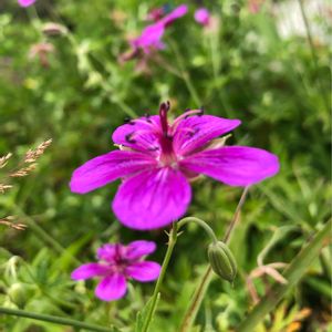 アサマフウロ フウロソウ科 濃い紅紫色の花が咲きました💠 六甲高山植物園で見て 気に入って苗を購入しました💠 派手な色のようですが 茎が細くユラユラ揺れる様子は郷愁を誘います😊