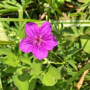 美し森散歩④ 濃いピンクが綺麗なアサマフウロ✨ ✨✨✨ 【アサマフウロ(浅間風露)】 Geranium soboliferum var. hakusanense フウロソウ科フウロウソウ属の多年草 高さ 50~80cm 花期 8〜9月 準絶滅危惧種
