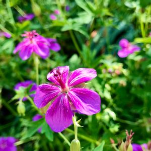 水辺のアサマフウロ フウロソウ属多年草 花言葉は変わらぬ信頼、陽気 これも河口湖花テラス たくさんの種類が咲いていたので 花の都公園と花街道はそれぞれ みどりのまとめ中です😘