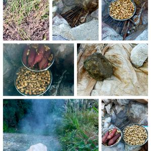 今日のお花。 落花生を 掘り 近くにある地獄に落花生とさつま芋を持って行き 蒸します。 噴気孔に置き蒸気が逃げない様に布を掛けて2〜3時間待ちます。 茹で落花生と蒸し🍠芋が出来上がります。