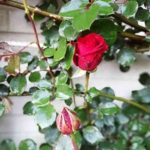 -うちの一番花- 今年の一番花が咲きました😀 返り咲きつるバラのカジノカジノです。 去年は冬の遅い時期まで咲いてくれてました。寒さにに強いのかなー